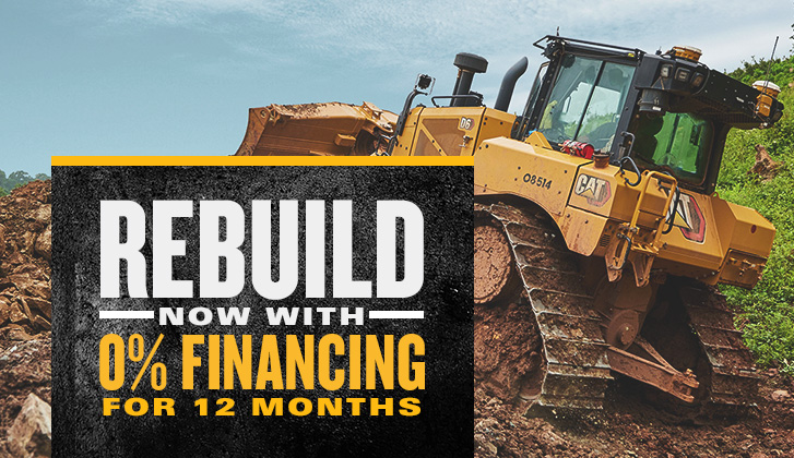 Unlock the potential of your fleet across every aspect of your business with our exclusive 0% financing offers. Whether you're looking to revitalize your existing equipment with a rebuild, acquire cutting-edge equipment through our simple financing offers, or extend your capabilities with Cat® used machinery, we have tailored solutions to meet your needs without upfront costs.