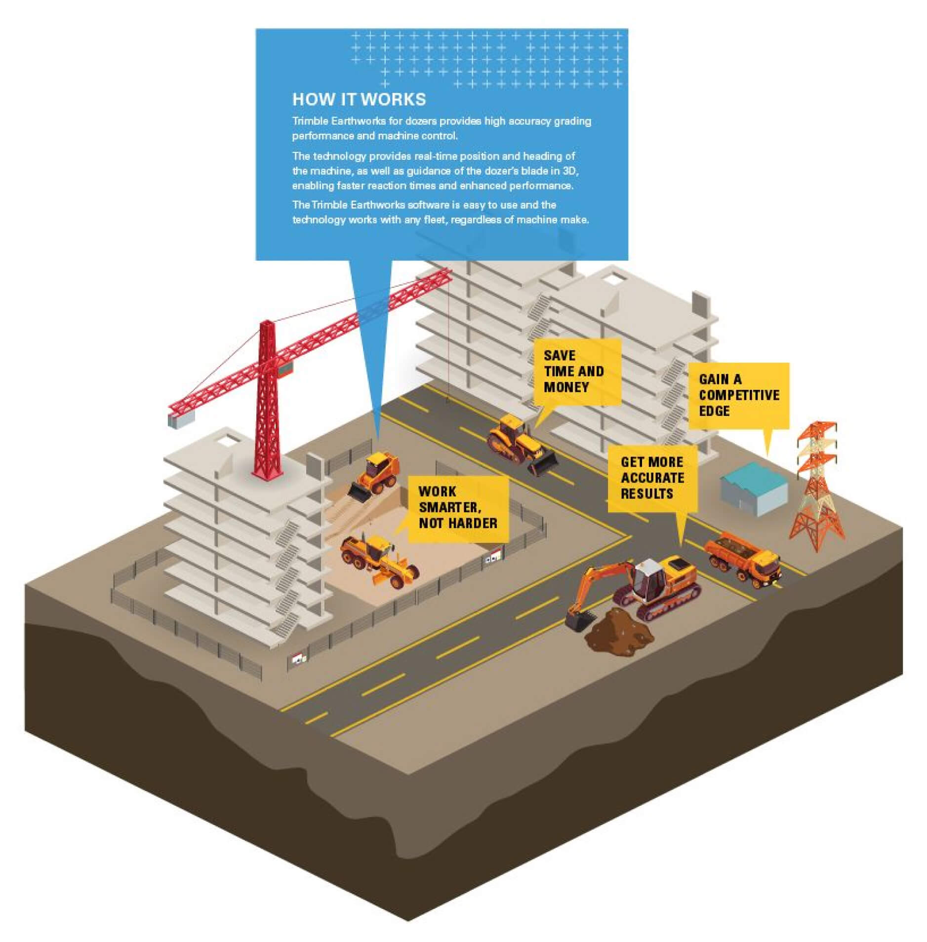 Trimble technology provides an automated grading solution with highly accurate GPS positioning. Both management and staff found that the technology delivered more accurate grading results and saved them money.