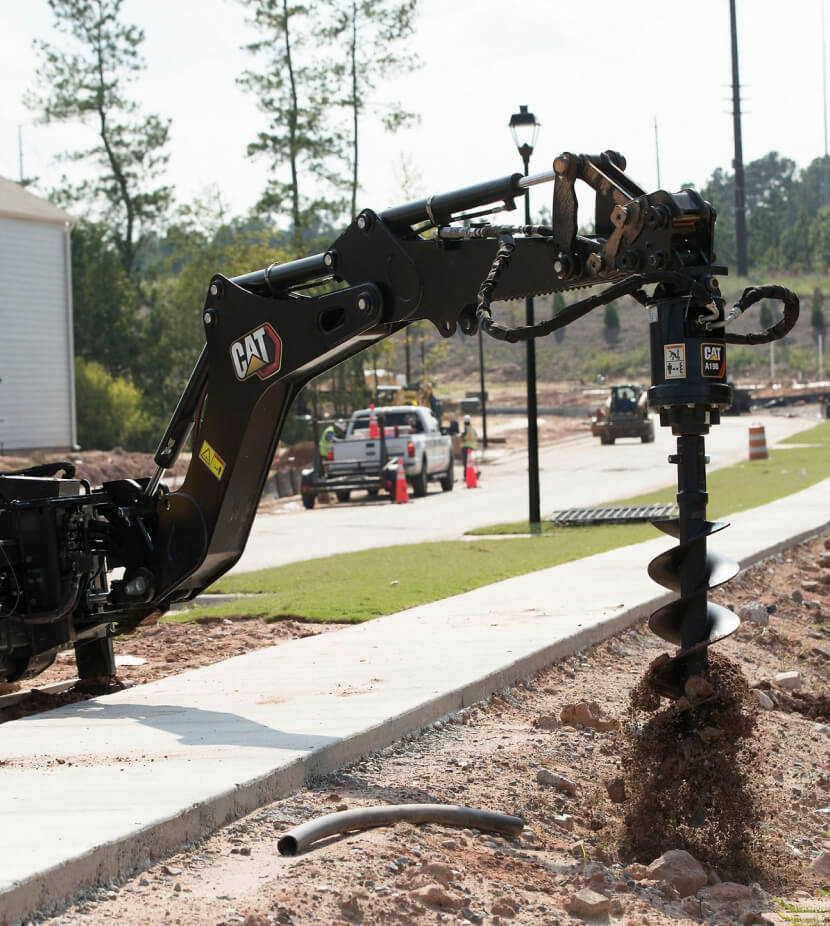 As an added bit of versatility, the SMART Backhoe attachment is compatible with Cat 3-ton excavator work tools like hammers, augers, compactors, and more.