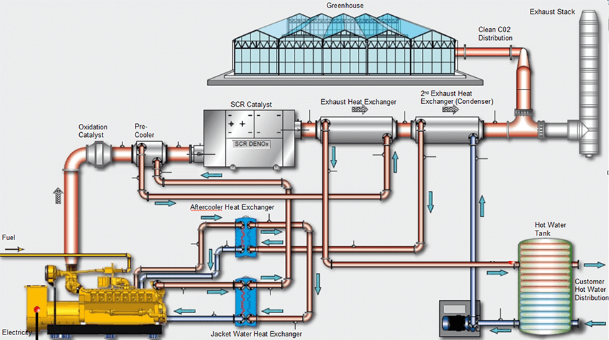For businesses like greenhouses, municipalities looking at district heating, or islanded remote locations who have an increased focus on sustainability, CHP provides the heat they need while lowering energy costs by combining both sources with one asset. Providing reliable power and lowering GHG emissions.
