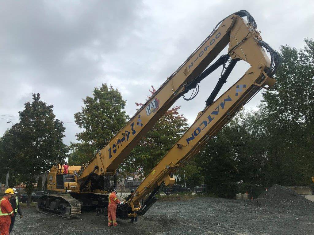 Matcon Demolition Ltd. (MDL’s) newest fleet addition, a Cat® 352 UHD excavator, is the first one of its kind in Western Canada, making the journey all the way from Caterpillar in South Carolina. For a machine this size, shipping in multiple loads is a given. The machine without the boom and stick was shipped on one lowbed, followed not far behind by the 50-foot boom and 29-foot stick. Buying Cat equipment for demolition purposes isn't a first for MDL, the company's demolition fleet already includes two Cat 336 excavators equipped with concrete crushers and shears. However, in this instance MDL needed a machine with both high reach capability and ability to be used in conventional excavator configuration.