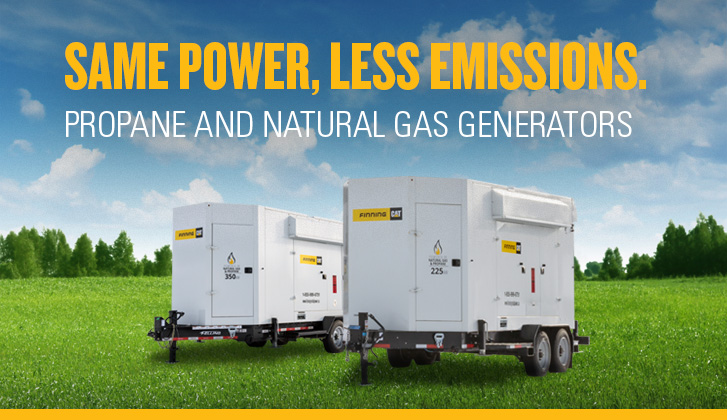 We have a full range of mobile generator sets that can operate on natural gas, compressed natural gas, liquified natural gas or propane. For added reliability, these units are capable of automatically switching between propane and natural gas under an electrical load. Finning also carries larger Cat® natural gas mobile recipe generator sets in our rental fleet. These can operate on natural gas, compressed natural gas, or liquified natural gas. Natural gas rental generators are typically used for prime power applications in the utility, construction, oil & gas and pipeline industries.