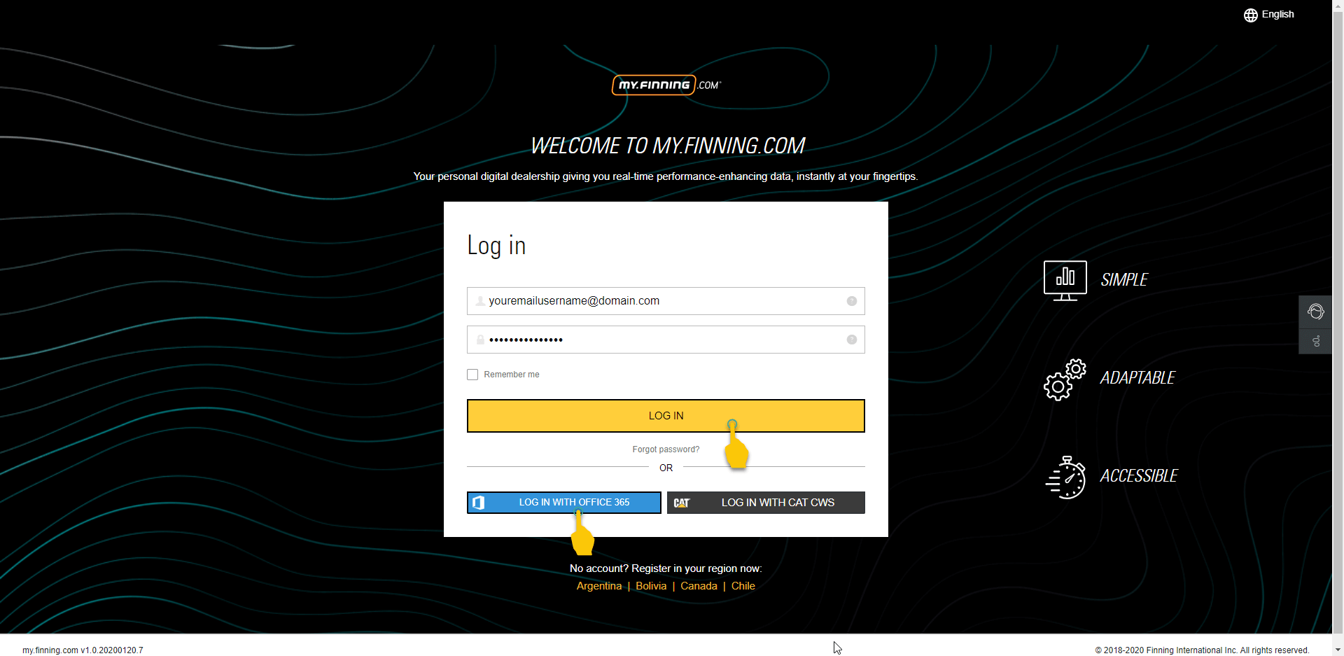The CUBIQ platform now supports single-sign-on (SSO) with your Cat CWS ID. SSO reduces the number of user names and passwords you need to remember to access Finning and Cat online services, and simplifies your online experience; once logged in using your CWS ID you don’t need to enter it again to access Cat SIS, SOS, Inspections, VisionLink or other services.