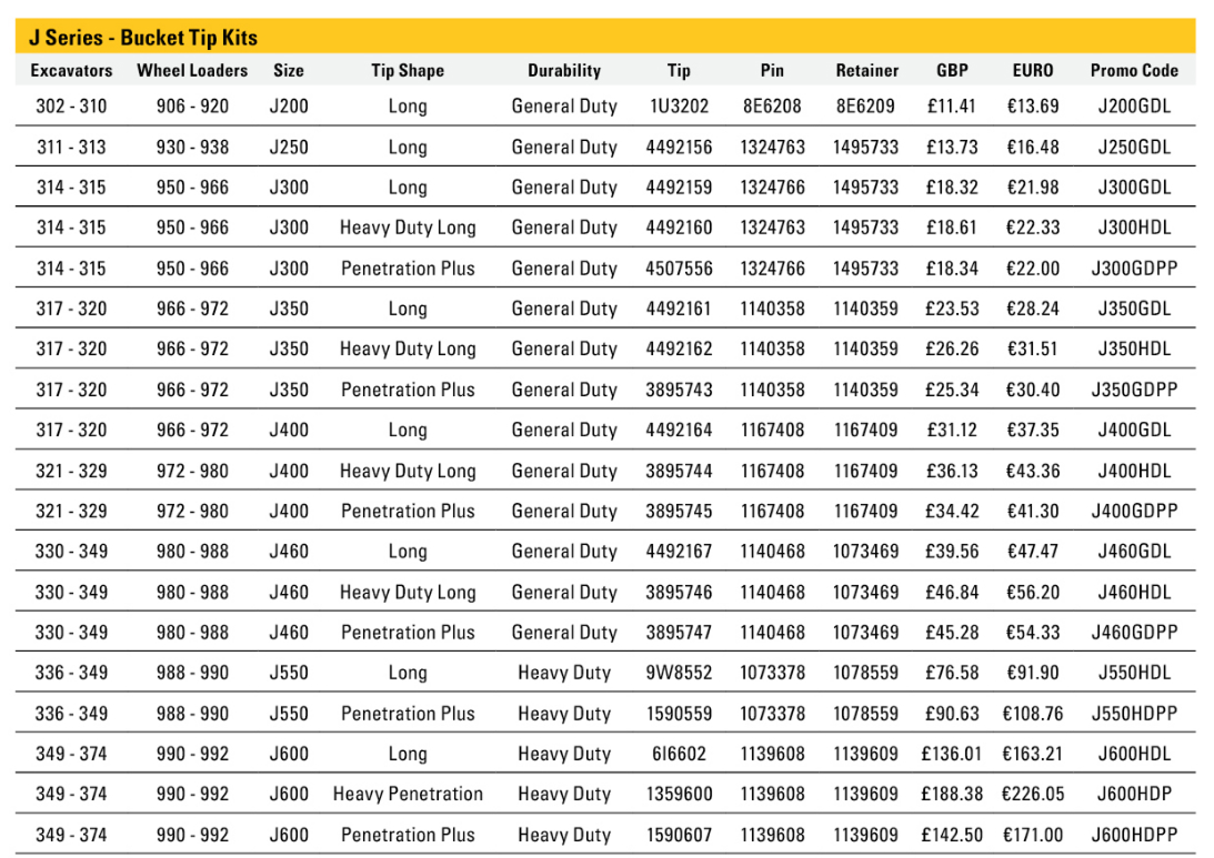 Order now by clicking on the button below to visit parts.cat.com and enter the part numbers relevant to the kit you require. Simply look up the tip kit you require from the tables on the right, type the applicable promo code upon check out to receive the tip kit.