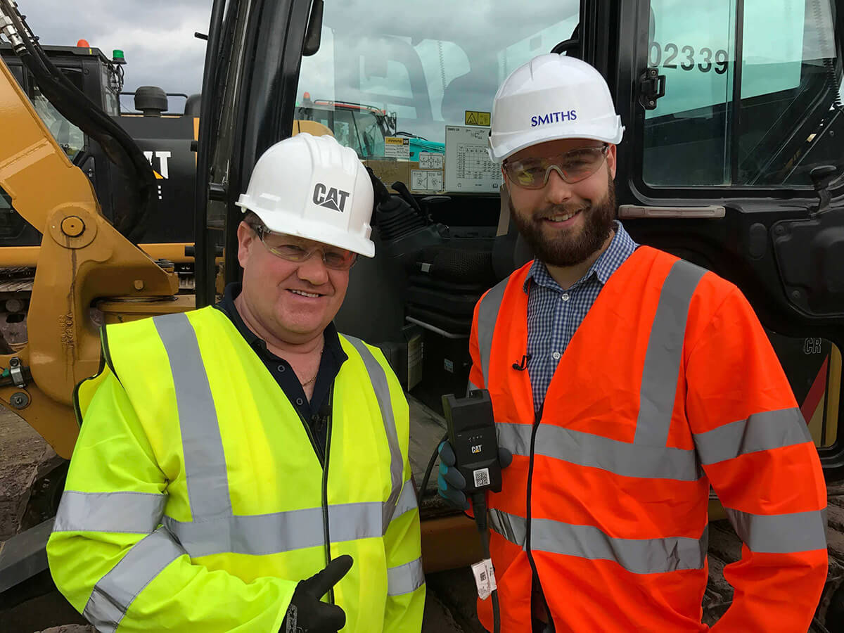 The next stop of the Connected Tour was Gloucester, where Nick Drew showed plant co-ordinator Shane Groves at Smiths of Gloucester Ltd. how to fit the unit himself to one of his Cat 308E Excavators.