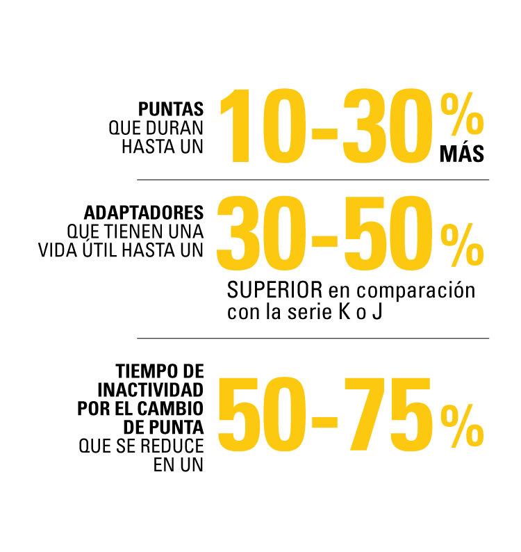 - Geometría mejorada de la punta del adaptador reduce los deslizamientos, permitiendo prolongar la vida útil de éste.