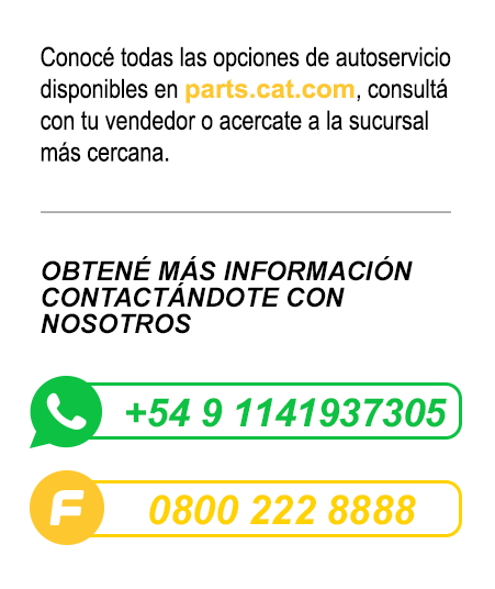 Las opciones de autoservicio son repuestos que están disponibles en parts.cat.com/es/finningargentina para la compra; una vez hayas realizado tu pedido, recibirás a tu correo un manual con los pasos para que tu mismo realices la reparación o mantenimiento en tu equipo. Esto te permite reducir costos de servicios externos y tiempos de inactividad de tu equipo.