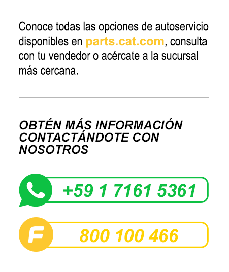 Las opciones de autoservicio son repuestos que están disponibles en parts.cat.com/es/finningbolivia para la compra; una vez hayas realizado tu pedido, recibirás a tu correo un manual con los pasos para que tu mismo realices la reparación o mantenimiento en tu equipo. Esto te permite reducir costos de servicios externos y tiempos de inactividad de tu equipo.