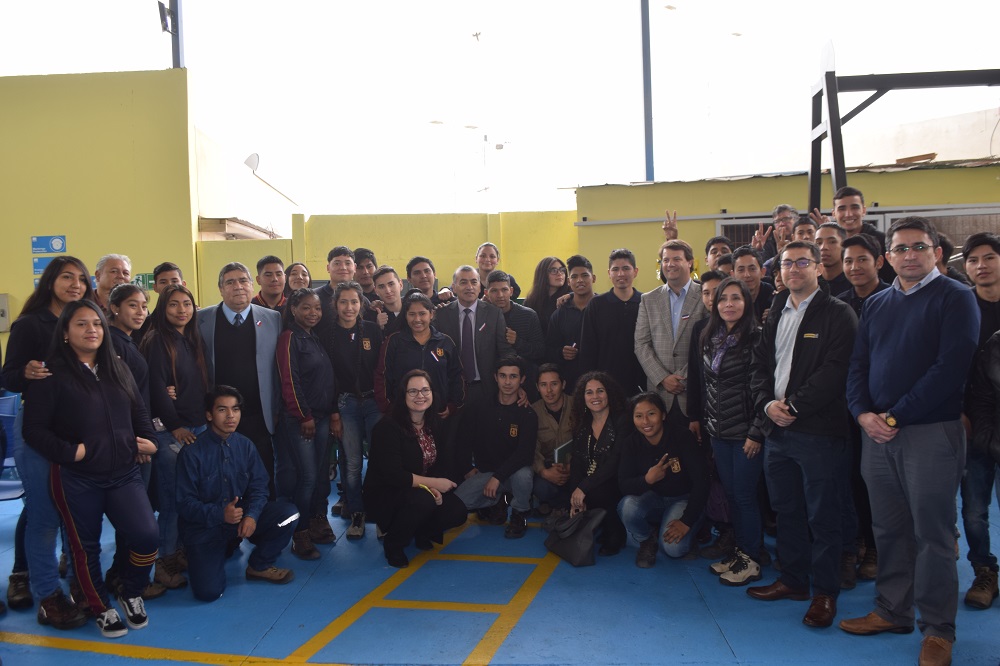 Un acto que estuvo presidido por Oscar Varas Naranjo, Director del establecimiento y Matías Valdés, gerente sucursal de Finning de la Región de Antofagasta y en el que también tomó parte Gerente de Comunicaciones y Asuntos Públicos de la compañía.