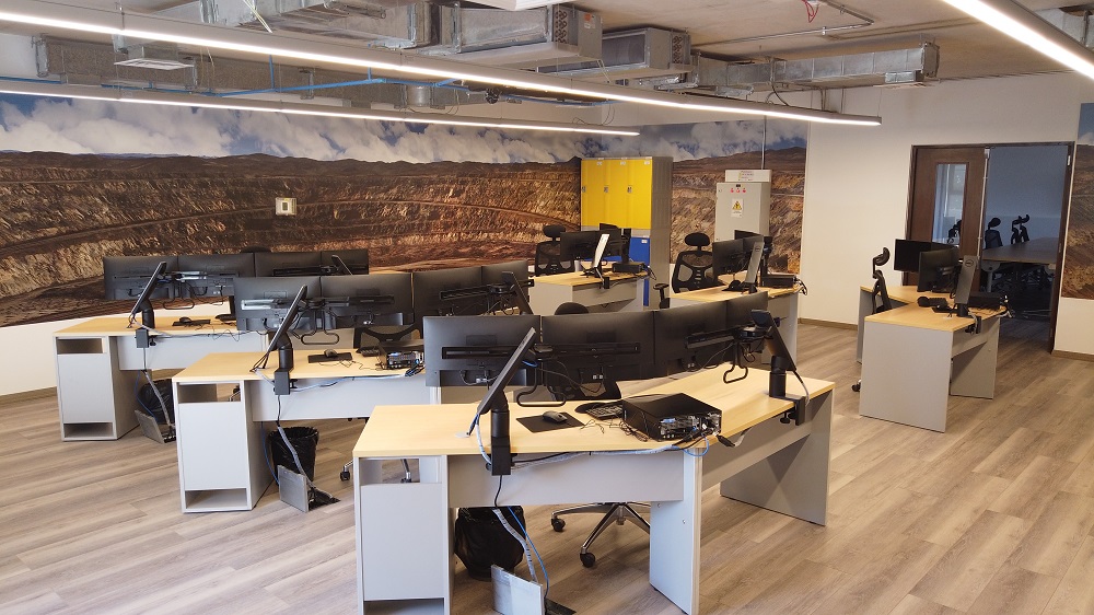 Sim School es una innovadora sala de clase con tecnología de última generación que permite -a quien opera- simular estar dentro del camión y telecomandarlo. En este primer curso, donde participan hombres y mujeres de una importante minera del norte del país, está siendo dictado por un instructor conectado desde Brasil.